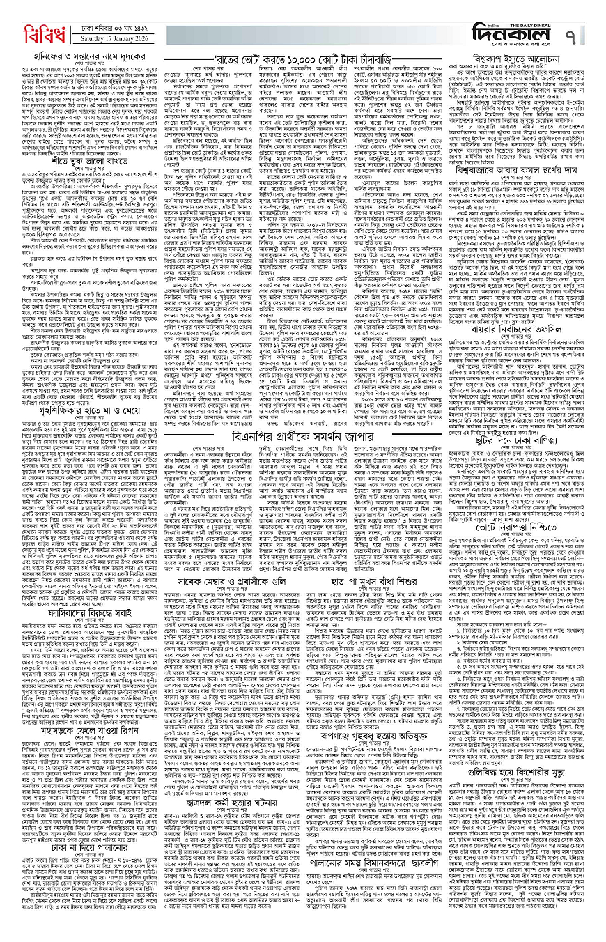 দিনকাল ইপেপার Page: 7 January 17, 2026 5 6 7 8 Page 1Page 2Page 3Page 4Page 5Page 6Page 7Page 8 × দিনকাল ইপেপার 12345678 << First << 7 >> Last >> Page no 1Page no 2Page no 3Page no 4Page no 5Page no 6Page no 7Page no 8