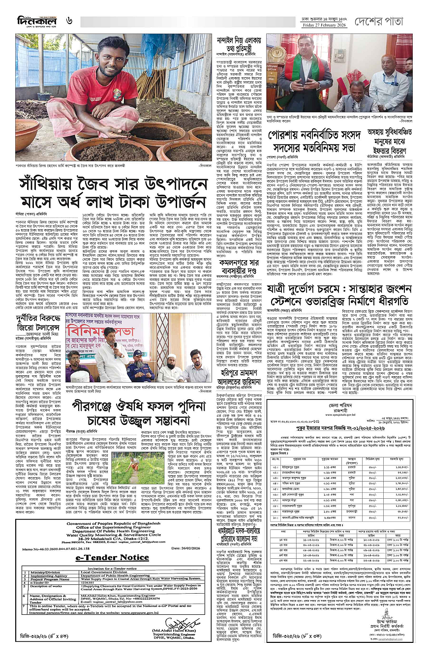 দিনকাল ইপেপার Page: 6 February 27, 2026 4 5 6 7 Page 1Page 2Page 3Page 4Page 5Page 6Page 7Page 8 × দিনকাল ইপেপার 12345678 << First << 6 >> Last >> Page no 1Page no 2Page no 3Page no 4Page no 5Page no 6Page no 7Page no 8
