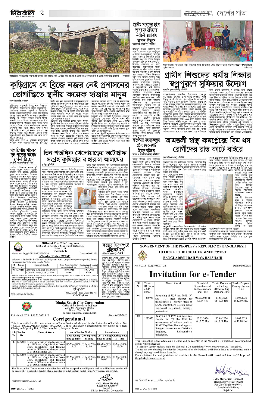 দিনকাল ইপেপার Page: 6 March 04, 2026 4 5 6 7 Page 1Page 2Page 3Page 4Page 5Page 6Page 7Page 8 × দিনকাল ইপেপার 12345678 << First << 6 >> Last >> Page no 1Page no 2Page no 3Page no 4Page no 5Page no 6Page no 7Page no 8
