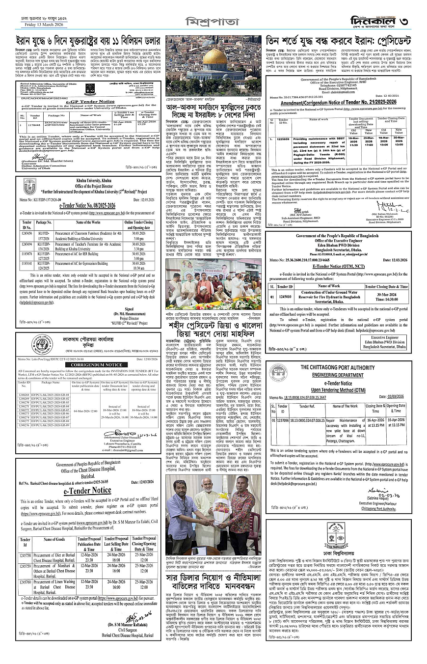 দিনকাল ইপেপার Page: 3 March 13, 2026 1 2 3 4 Page 1Page 2Page 3Page 4Page 5Page 6Page 7Page 8 × দিনকাল ইপেপার 12345678 << First << 3 >> Last >> Page no 1Page no 2Page no 3Page no 4Page no 5Page no 6Page no 7Page no 8