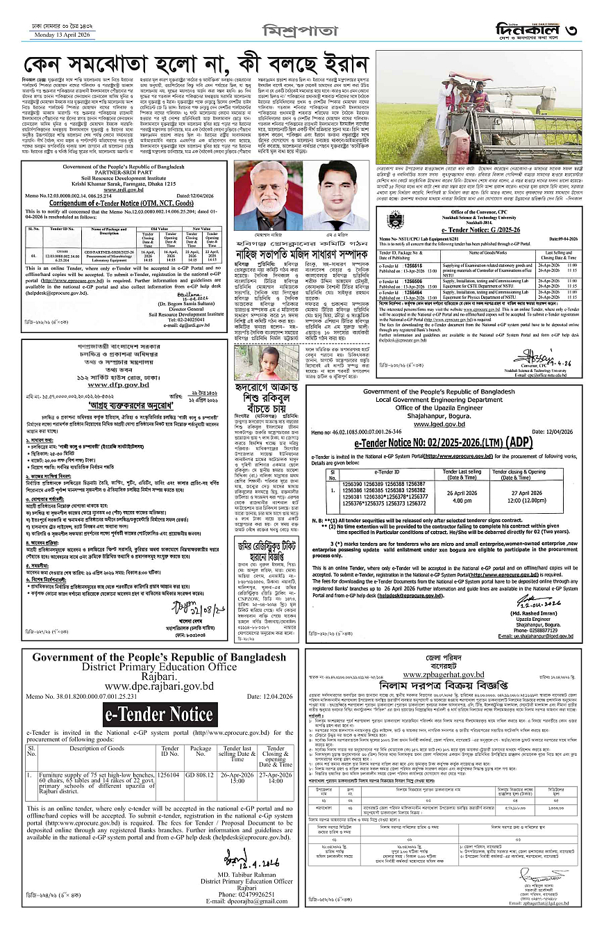দিনকাল ইপেপার Page: 3 April 13, 2026 1 2 3 4 Page 1Page 2Page 3Page 4Page 5Page 6Page 7Page 8 × দিনকাল ইপেপার 12345678 << First << 3 >> Last >> Page no 1Page no 2Page no 3Page no 4Page no 5Page no 6Page no 7Page no 8