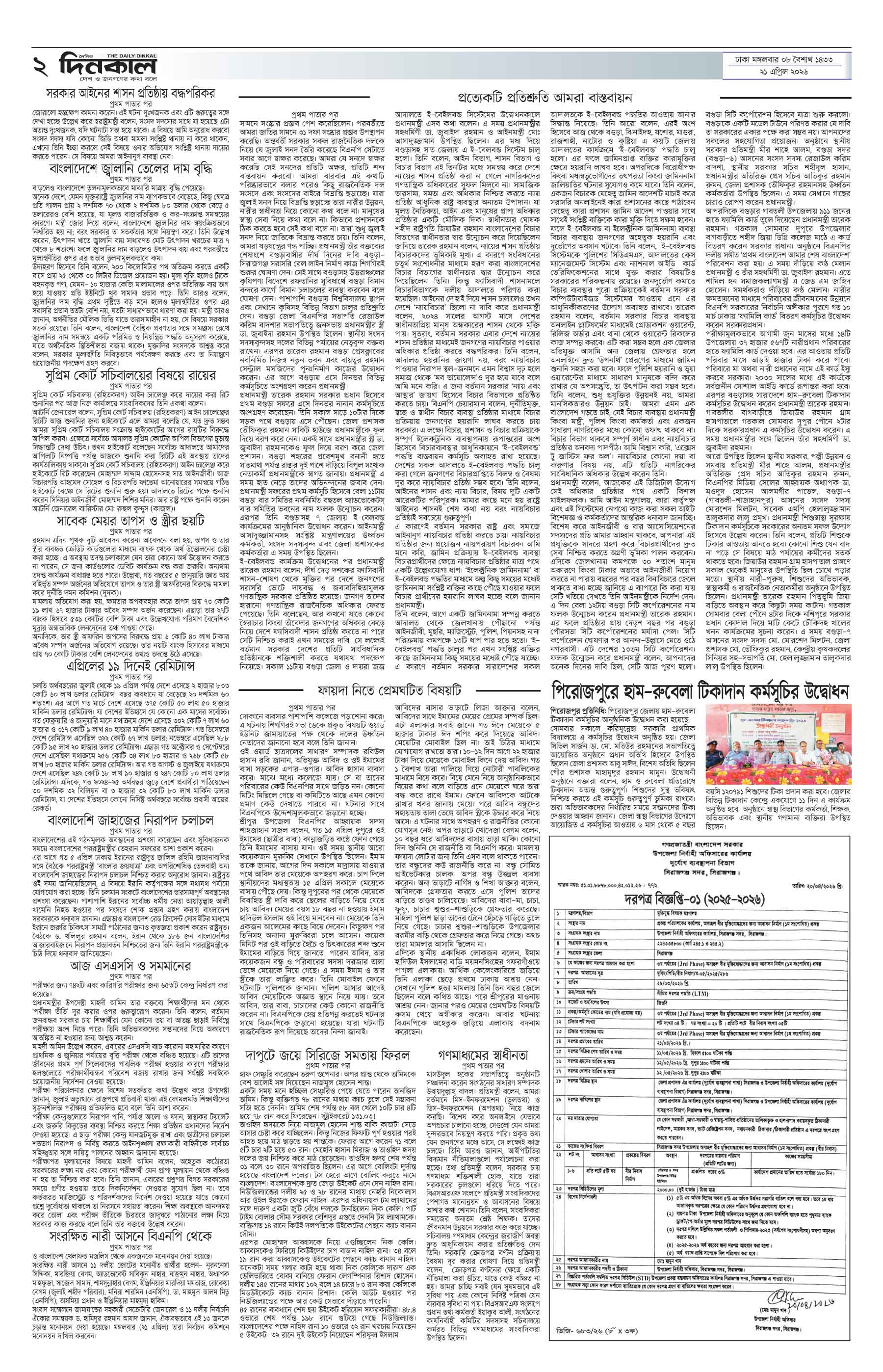 দিনকাল ইপেপার Page: 2 April 21, 2026 1 2 3 4 Page 1Page 2Page 3Page 4Page 5Page 6Page 7Page 8 × দিনকাল ইপেপার 12345678 << First << 2 >> Last >> Page no 1Page no 2Page no 3Page no 4Page no 5Page no 6Page no 7Page no 8