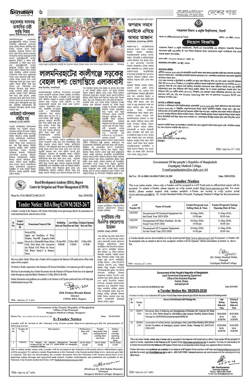 দিনকাল ইপেপার Page: 6 April 29, 2026 4 5 6 7 Page 1Page 2Page 3Page 4Page 5Page 6Page 7Page 8 × দিনকাল ইপেপার 12345678 << First << 6 >> Last >> Page no 1Page no 2Page no 3Page no 4Page no 5Page no 6Page no 7Page no 8